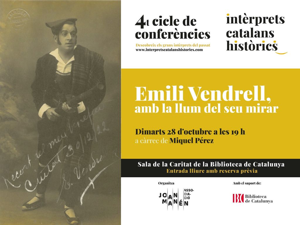 El dimarts 28 d’octubre de 2025 a les 19 h, tindrà lloc a la Sala de la Caritat de la Biblioteca de Catalunya la conferència “Emili Vendrell, amb la llum del seu mirar” a càrrec de Miquel Pérez, dins del 4t Cicle de conferències “Intè